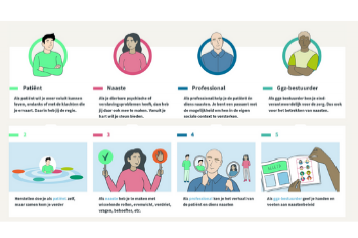 Samen met patiënten, naasten en professionals is onder begeleiding van Akwa GGZ de kwaliteitsstandaard voor het betrekken van naasten herzien. Naasten zijn heel belangrijk voor de patiënt en het herstelproces. Daarom is er een zogenaamde generieke module Naasten over de samenwerking met én ondersteuning van naasten.