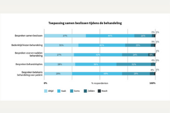 Ruim 700 ggz-professionals delen via het online Panel van Akwa GGZ hun praktijkervaring en dragen zo bij aan continue kwaliteitsverbetering. Het nieuwste rapport toont de uitkomsten van de enquête over samen beslissen. Als voordeel van samen beslissen wordt betere motivatie en commitment bij de patiënt genoemd. Ook worden er belemmeringen ervaren door professionals én is er behoefte aan ondersteuning op dit vlak.