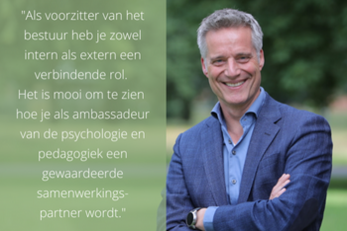 "P3NL vervult voor de psychologische en pedagogische beroepen werkzaam in de zorg een steeds grotere rol in een stevige en duidelijke positionering en profilering van deze beroepen. Als voorzitter van het bestuur heb je daarin zowel intern als extern een verbindende rol. Het is dan mooi om te zien hoe je als ambassadeur van de psychologie en pedagogiek een gewaardeerde samenwerkingspartner wordt. En hoe de omgeving op die manier steeds meer de toegevoegde waarde van deze beroepen herkend en erkend. Dat geeft voldoening waar op voortgebouwd kan worden. Want het werk is nog niet gedaan!" -Marc Verbraak, huidige voorzitter P3NL