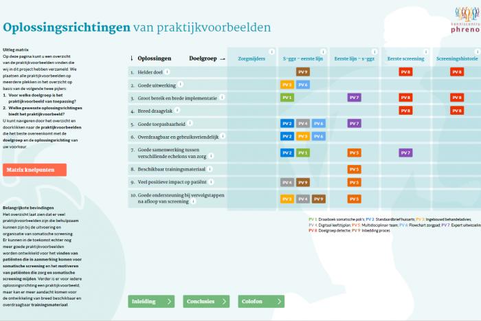 Mensen met ernstige psychische problemen hebben vaak lichamelijke klachten. Het in kaart brengen van de lichamelijke klachten (somatische screening) binnen de gespecialiseerde ggz en eerste lijn laat echter vaak te wensen over bij deze doelgroep. Om dit te verbeteren, gaat Phrenos een Starterskit Somatische Screening ontwikkelen. Deze starterskit biedt handvatten voor ggz-aanbieders om somatische screenign te implementeren. Dit project is onderdeel van Zinnige Zorg Psychose.