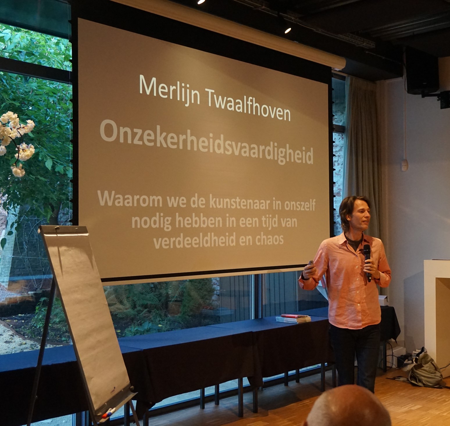 Het programma werd afgesloten met een bijzondere bijdrage van componist en theatermaker Merlijn Twaalfhoven. Hij liet zien hoe een creatieve en open mindset kan bijdragen aan gezamenlijke verandering. Zijn pleidooi is dat iedereen een ‘atelier’ nodig heeft. Tijd en ruimte om te dromen, om het even niet te weten, te voelen en te spelen (maken, testen en falen).